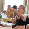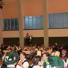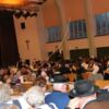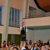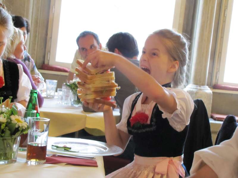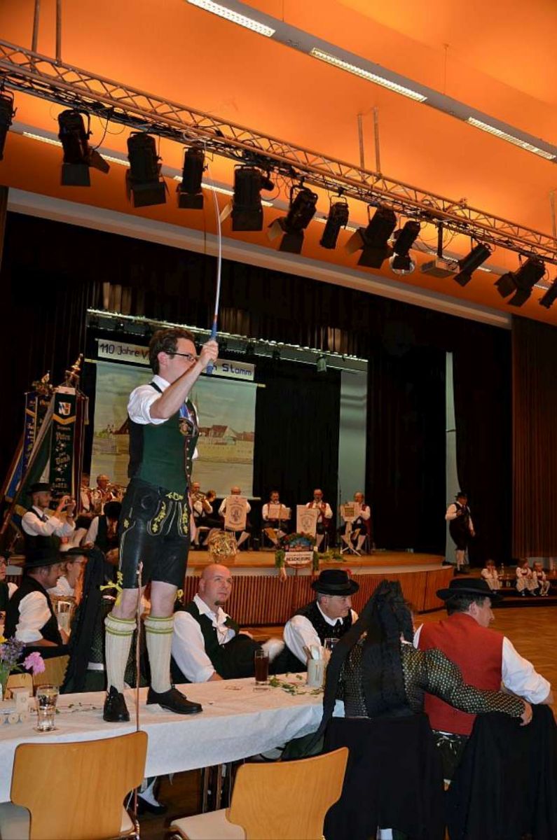 Anschließend kehrten wir in einen nahegelegenen großen Saal einer Gaststätte, mit liebevoll dekorierten Tischen ein, um den Festverein gebührend zu feiern. Nach der Fahnenparade und dem Singen der Bayernhymne folgten die Grußworte. Beeindruckend fanden wir die Rede des Oberbürgermeisters, der die Vereinsmitglieder des Festvereins unbedingt zum Weitermachen anhielt. Überzeugend versicherte er ihnen, dass sie ein sehr wichtiger Bestandteil der Stadt seien und mit ihrer Kinder- und Jugendarbeit großartige Arbeit leisteten. Gerne hätte er noch länger an der Feier teilgenommen, aber durch das gleichzeitig stattfindende dreitägige Stadtfest hatte er noch andere Verpflichtungen.