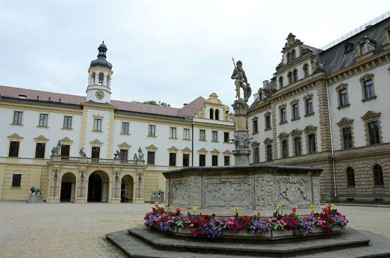 Unsere aus Frankreich stammende Schlossführerin nahm uns auf beeindruckende Weise mit, auf die zeitgeschichtliche Reise der Fürsten Thurn und Taxis. Unter andern erfuhren wir die Geschichte der Sinnbilder des Wappens (Turm und Dachs), die Verstrickungen zum Österreichischen Königshaus und die Bedeutung der Brüssler Wandteppiche, die in vielen Räumen des Schlosses zu finden sind. Die prunkvollen Zimmer des Schlosses ließen uns oftmals staunen und die Gruft für die verstorbenen Familienmitglieder erschaudern.